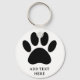 A pata do cão de desenho impresso a preto. Versão branca de fundo. Editar texto para personalizar. Correntes-chave decorativas e minimalistas para casas e empresas como compradas para animais. Ideia de presente para amantes de cães.