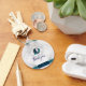 This keychain features a simple, modern design with a bold white background that offers a clean and contemporary look.