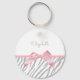 Um padrão de tigre de cinza de de tendência é um chaveiro básico embelezado com uma imagem de um arco de cetim rosado giro. Personalize adicionando o nome da sua garota favorita. Imagem impressa plana, NÃO afixada com uma fita real.