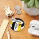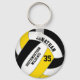 Este chaveiro de voleibol masculino personalizado com o nome da equipe apresenta um vôlei preto, amarelo e branco sobre o qual você pode personalizar o nome do jogador e o número de camisa mais o nome da escola e do mascote - por katz_d_zynes