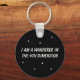 Um chaveiro preto com estrelas brancas e a frase "Sou um andarilho na 4ª dimensão". Um presente de excelente para viajantes do tempo e fãs de ficção científica.