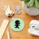 Ninja de desenho animado bonito vestido de preto está correndo enquanto segura uma estrela lançadora.