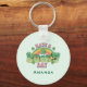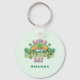 Um chaveiro com uma Rua. Imagem temática do Dia de Patrick. Um design de estilo retrô grunge que diz: Tenha um dia de sorte. Com um arco-íris colorido atrás. Palavras escritas em uma víbora retrora gorda arredondada. Cor rosa e verde.