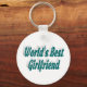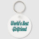 Corrente chave com o melhor namorada do mundo em texto azul 3D. Correntes de chave redondas e quadradas disponíveis em vários tamanhos.