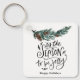 Tis The Season To Be Jolly | Watercolor Greenery Pine Cone Elegant and Minimalist Family Photo Collage Double-sided Keychain. All the texts are pre-arranged for you to personalize easily and quickly with your own details. Wish you all a Happy Holidays!
