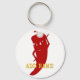 Um personagem de desenho animado de pimenta vermelho e quente. Design original. Chaveiros personalizados. Editar nome para personalizar. Ideia para amantes de comidas picantes.