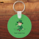 Chaveiro com uma Ilustração de um belo duende sorridente vestindo um terno verde, um chapéu alto enquanto segurava uma folha de shamrock Um design perfeito para celebrar o Dia de São Patrício, desenhado por Radka2D