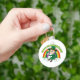 Chaveiro com uma Ilustração de um belo duende sorridente vestindo um terno verde, um chapéu alto enquanto segurava uma folha de shamrock, com um arco-íris colorido ao fundo e texto dizendo "Feliz Rua. Dia de Patrick" Um design perfeito para celebrar o Dia de São Patrick, desenhado por Radka2D