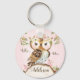 Coruja Floral Personalizada Key Ring A coruja doce Coruja coroa coruja coruja coruja apresentando uma coruja aquosa vestindo uma coroa floral, alguma folhagem e parte de uma fatia de madeira. Excelente para um presente personalizado.