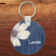 Design de Flor Nome Personalizado chaveiro de textura de jeans azuis. Adicionar o nome desejado. Um presente bonito para um amigo ou parente ou mesmo para você. Mais cores e estilos disponíveis. Ideal como presente de aniversário ou para cada ocasião. O nome também pode ser mudado para Mãe, irmã etc. Clique em Personalizar este modelo ‘Detalhes’ para personalizar ainda mais. Flor é uma mão esboçada.