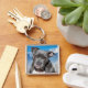 Pit Bull Grande Chaveiro Premium Square Cor de Cheio Grande Quadrado, Impressão de cheio Impressão Silver Coloração de Metal e Anel Resistente a UV e à Prova de Água Adicionar Fotos, Trabalho de arte e Texto Sem Ordem mínima