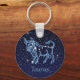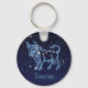Chaveiro com o símbolo do zodíaco para Taurus em azul-prata-suave, sobreposto com as estrelas da constelação, contra um fundo do céu estrelado formando de azul-da-meia-noite para preto.