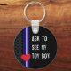 Mostre seu orgulho de couro com este chaveiro divertido. Mostrando as cores da bandeira do orgulho de couro, esta chave diz "Peça para ver minha caixa de brinquedos" e pode ser personalizada para dizer o que quiser. Faz um presente excelente para um colega de couro, senhor, pai, rapaz ou mãe ou menina.
