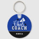 Mostre ao seu treinador favorito um espírito de equipe com este chaveiro personalizável em suas cores de preto, azul e branco.