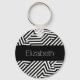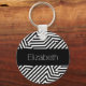 Adicione moda e talento ao seu estilo pessoal com esta tendência e chaveiro de padrões geométricos negros e brancos. Personalize este design gráfico moderno e na moda com triângulos e blocos ziguezaguis chevron, adicionando o nome de qualquer garota feminina.