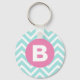 Chaveiro Trendy Light Blue Chevron Pink Monogram