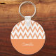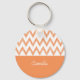 Um kechain de padrão cevon cor de laranja e branco, desenhado à mão, com braçadeiras cor de lápis desenhadas à mão. Personalize este design de zigzag laranja moderno e na moda adicionando seu nome.