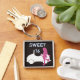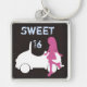 Trendy Sweet 16 Chaveiro. Possui moça silhueta e carro em castanho, rosa, azul e branco. Alguns gráficos de trabalho de arte ©BELDS-Dodles.