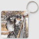 Esta chaveiro útil, a saída do zip, mostra minha fotografia de três pombos na ponte que passa pelo Canal Real Militar Hythe England. Manipulei a imagem para me assemelhar a um desenho animado, dando à composição um interesse extra, Um presente ideal para um entusiasta do Pombo e perfeito para manter suas chaves seguras.