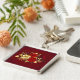 A composição de duas rosas vermelhas pintadas artisticamente e uma rosa ouro, decorada com ouro, folhas de joias sobre fundo texturizado.