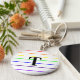 Divertido verão sente as faixas geométricas coloridas do arco-íris em vermelho, laranja, amarelo, verde, azul, índigo, violeta contra fundo branco. Personalize o centro com o monograma inicial em texto preto. Designs originais por TamiraZDesign.