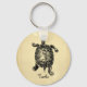Chaveiro de diversão com ilustração de tartaruga vintage sobre fundo antigo de papel
