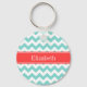Chaveiro Turq / Aqua Wht Chevron Coral Red Name Monograma