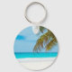 Areia serena e tranquila praia de areia branca tropical. Águas calmas de turquesa e algumas palmeiras para sombra. O lugar perfeito para descansar e relaxar.