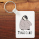 Keyring com Twaddles de um lado e sua persona heroica secreta do outro lado.