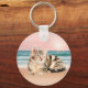 Chaveiro Um gato riscado mais bonito sentado na praia com o