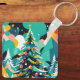 Esta é uma cadeia-chave original do Natal da Habatour Creations, cheia de uma ilustração colorida da árvore de natal moderna, design de copyright de @Habatour Creations Copy ou use sem permissão é ilegal