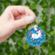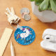 Um lindo unicórnio branco tubérculo, com mano, cauda, cascos de grão e ouro coloridos, numa cama de reluz azul. Essa adorável cadeia de teclas unicórn pode ser personalizada facilmente com seu próprio nome nas opções personalizadas. Este anel de chave unicórnio faria um presente excelente para um amante de unicórnio, ou seria perfeito para favoritos para festas de unicórnio.