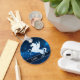 Chaveiro Unicórnio Prateado sobre Monograma Azul Esparso