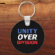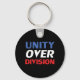 "Unity over Division" azul, vermelho, preto, chaveiro branco