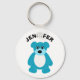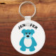 Crie um pequeno presente divertido com um toque personalizado ou use esta cadeia-chave como um favor de festas para os ursos de pelúcia. A chaveiro apresenta uma ilustração fofinha de um ursinho peludo em azul-turquesa brilhante e está pronta para ser personalizada com um nome ou outro texto em caracteres negros.
