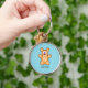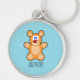 Chaveiro Urso marrom, monograma, de pelúcia azul