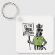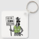 Use O Anel De Chave De Cruzamento De Zebra. Uma zebra de desenho animado vestindo óculos de sol e uma jaqueta verde atingiram uma pose elegante, carregando uma placa pedindo a todos que "usem a travessia de zebra!"