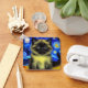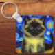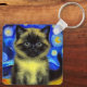 Chaveiro com um gato siamês na pintura de Van Gogh Starry Night! Esta beleza fofa se coloca em frente a um céu azul noturno com lua e estrelas brilhantes. Um presente aconchegante para amantes de gatos e colecionadores de arte holandeses!