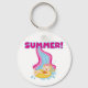 Um design bonito para o verão, as características uma menina de cabelo loura no fato de banho e o anel que vem para baixo o texto da corrediça de água e do rosa quente e do azul que lê o VERÃO! T-shirt do verão, bodysuits, babadores, canecas, cartões, bolsas, etiquetas, lembranças, travesseiros, e muito mais.