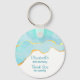 Um partido favorece a cadeia de chaves com um design de verão sereno. Turquesa / aqua imagem aqua verde aquosa com uma borda de ouro ondulada. Elegante e adorável.