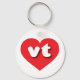 Este chaveiro apresenta um coração vermelho vibrante contendo as letras maiúsculas vt, brancas, arredondadas e em negrito, uma abreviação lúdica para Vermont, o estado verde da montanha.