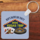 Personalize seus próprios porta-chaves de despedida de solteiro para uma viagem a Las Vegas. Um porta-chaves personalizado legal com itens essenciais de cassino, como um baralho de cartas, fichas de pôquer e roleta com 'Viagem de Las Vegas' em letras amarelas. Presente de lembrança divertido para jogadores para seus padrinhos e o melhor amigo.