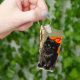 Chaveiro com um gato preto de Halloween e abóboras! Esta pequena bola de pelo fica adoravelmente ao lado de duas abóboras laranja. Um presente de excelente para festas de Halloween e amantes de gatos!