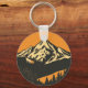 Um design de inspiração vintage, com um pico majestoso de montanha banhado no brilho quente de um sol. A montanha está cercada por uma densa floresta de pinheiros, criando uma atmosfera pacífica e serena.