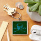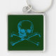 Chaveiro de crânio e bósforos. A cor e o estilo de fundo podem ser personalizados.