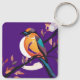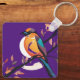 Esta elegante chaveiro apresenta uma ilustração vibrante de uma ave colorida, pregada num galho, colocada contra um fundo lavanda. Feito de materiais duráveis, é perfeito para adicionar um toque de arte inspirada na natureza às suas chaves ou bolsa.