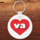 Este chaveiro apresenta um coração vermelho vibrante contendo as letras maiúsculas, brancas, arredondadas e em negrito va, uma abreviação lúdica para Virginia, o antigo estado dominó.