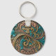 O chaveiro de aparência de couro ocidental tem o aspecto de couro gravado com um toque de cor turquesa misturado. Isso seria um chaveiro único para você, como presente, ou alguém especial em sua vida também.