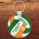 Este chaveiro de vôlei personalizado com o nome da equipe apresenta um vôlei verde, laranja e branco sobre o qual você pode personalizar o nome do jogador e o número de camisa mais a equipe da escola e o nome do mascote - por katz_d_zynes