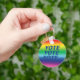 votação do voto - orgulho lgbtq lgbt cores do arco-íris, letras azuis chaveiro